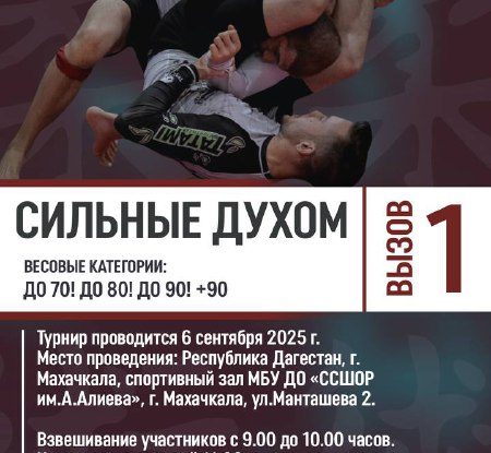 Дорогие друзья! 6 сентября в спортивном зале МБУ ДО «ССОШР им. А. Алиева» состоится турнир по грэплингу среди слабовидящих «Сильные Духом».