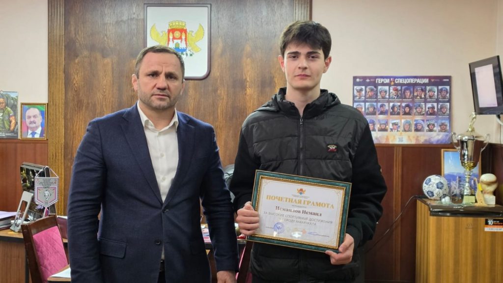 Мурад Мирзагаджиев поздравил победителя и его тренера с блестящим успехом от имени главы г. Махачкалы Джамбулата Салавова, пожелал им новых спортивных вершин, крепкого здоровья и побед во имя столичного спорта.