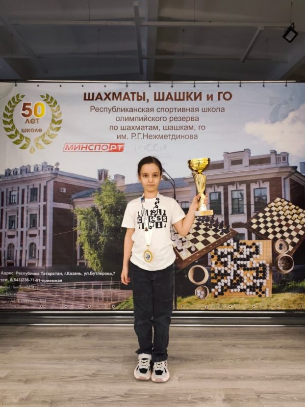 Воспитанница тренера Мансура Мусаева, 8-летняя махачкалинка Аят Гасанова показала абсолютный результат и, набрав 9 очков из 9 возможных, заняла 1 место среди девочек до 9 лет.