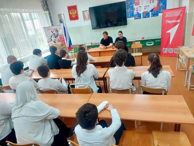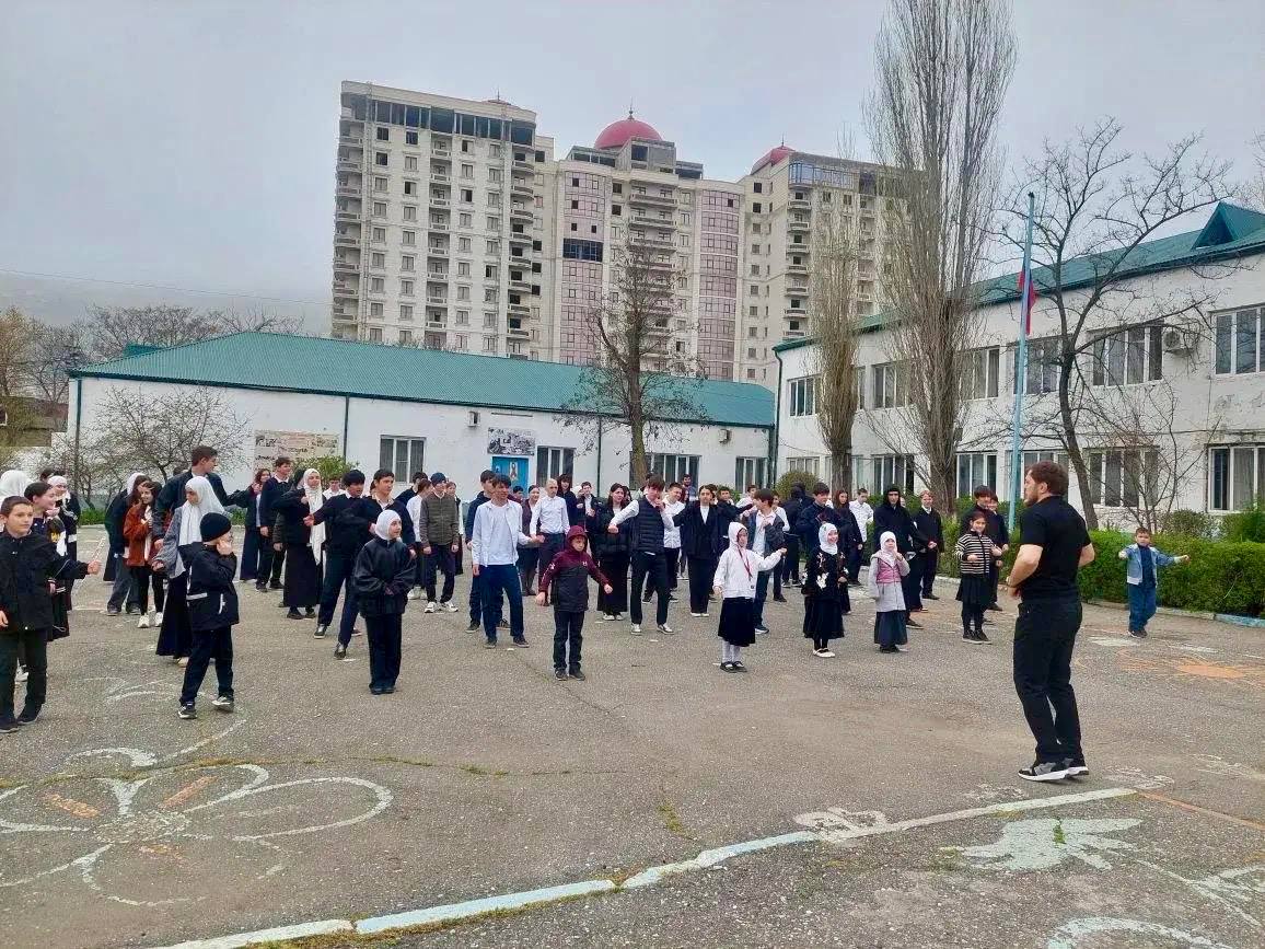 Хабиб Абдулаев — директор муниципальной спортивной школы имени Б. Ибрагимова, заслуженный тренер России по боксу, чемпион Европы и мира по смешанным единоборствам, депутат городского собрания Махачкалы — провел зарядку, а затем беседу с учениками столичной СОШ № 15.